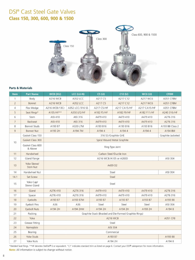 DSI Valves Steel Carbon, Stainless and Alloy Gate, Globe and