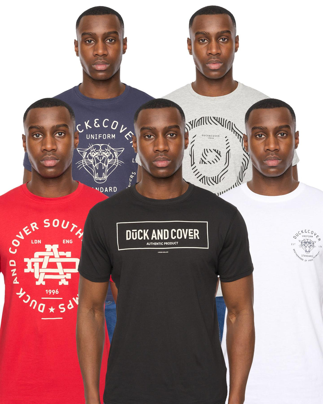 Buy Duck and Cover Mens Corsure Five Pack TShirts White/Black/Red/Grey