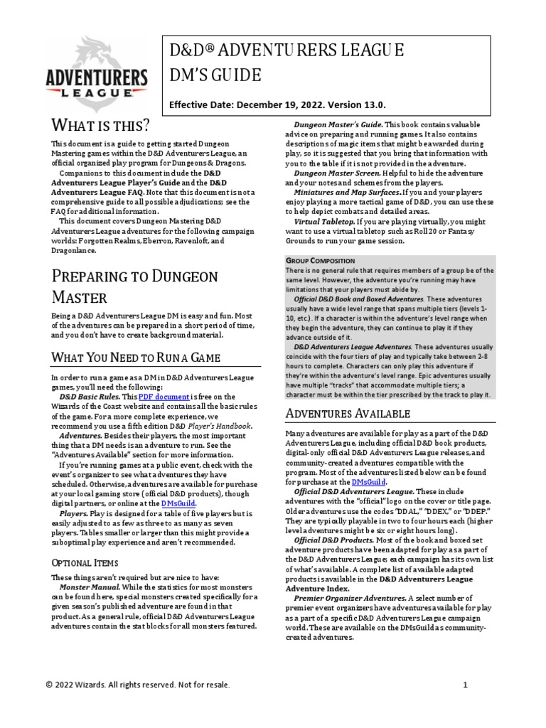 D&D Adventurers League Guide PDF Dungeons & Dragons Gaming