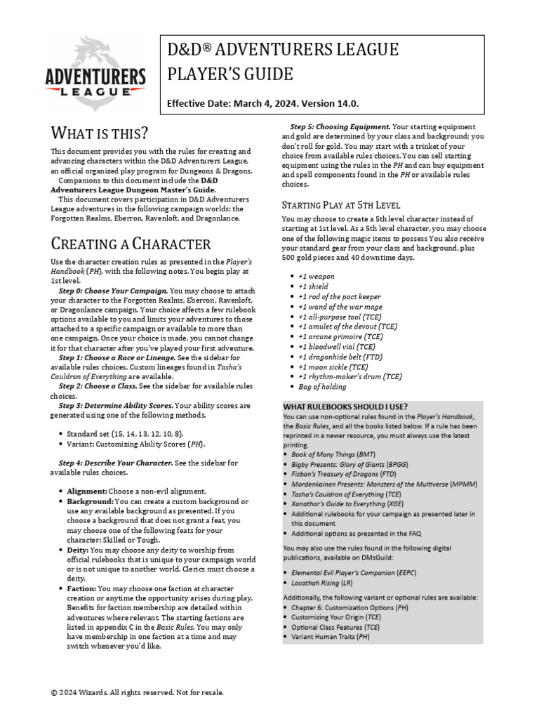 D&D Adventurers League Player's Guide v14.0 PDF Dungeons & Dragons