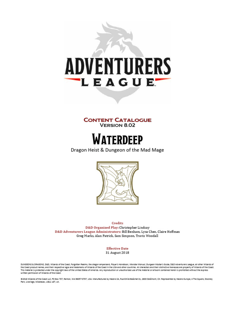 Dungeons Dragons Adventurers League Content Catalog