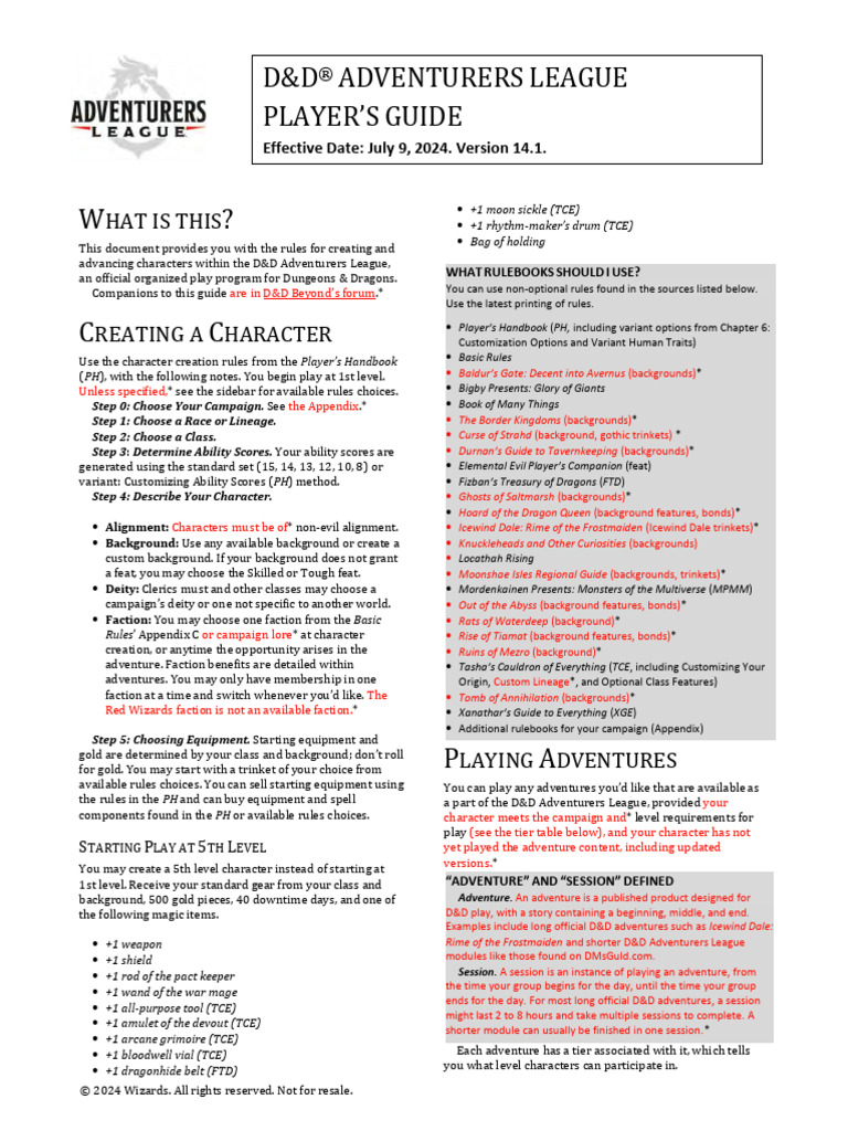 D&D Adventurers League Players Guide v14.1 PDF Dungeons & Dragons