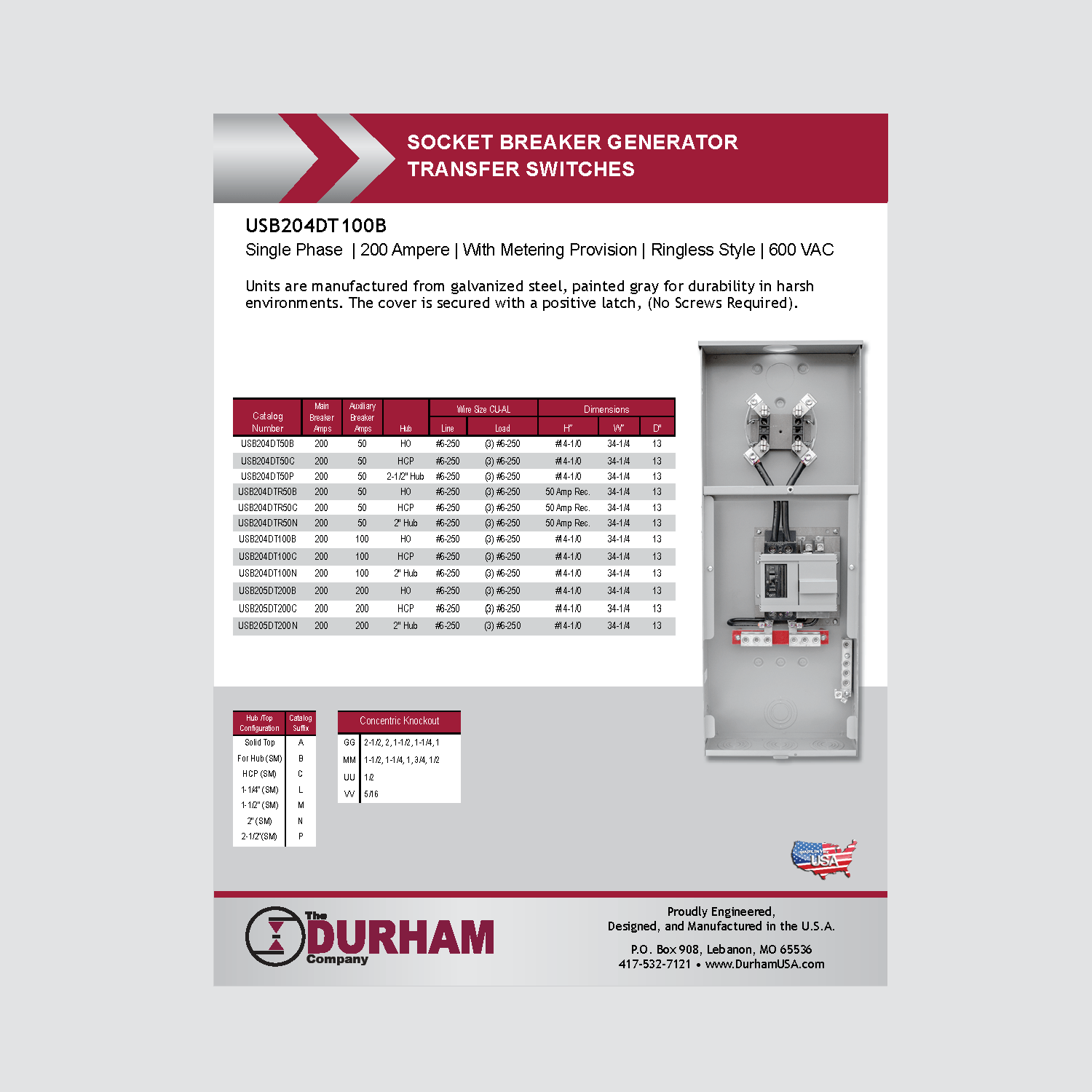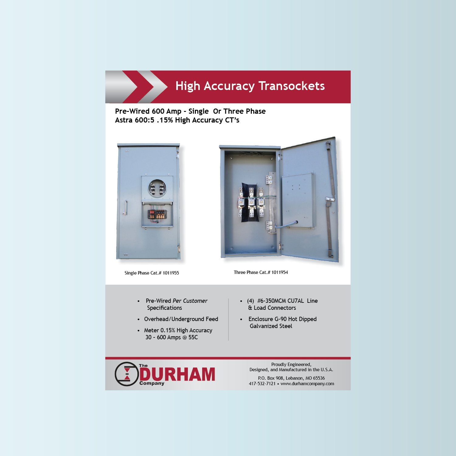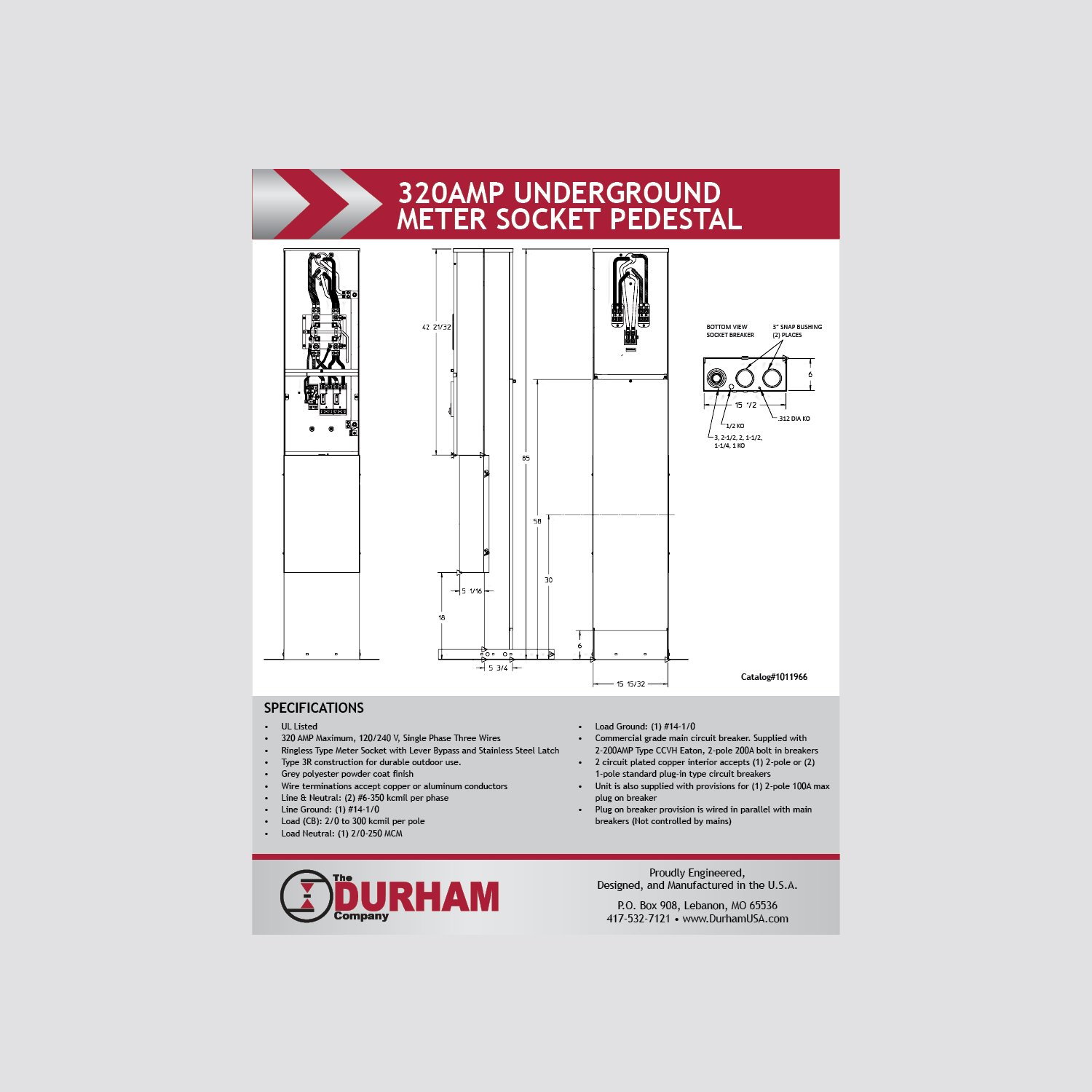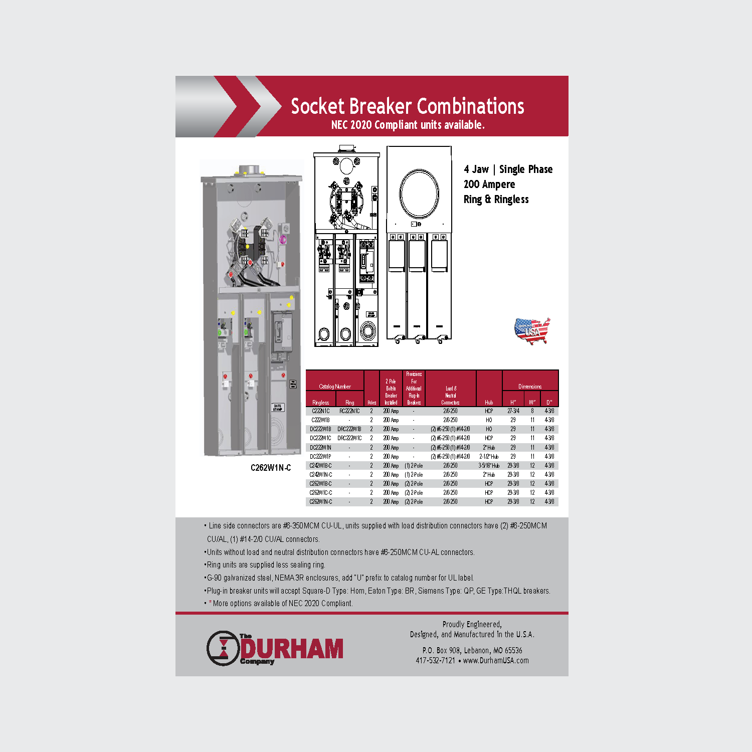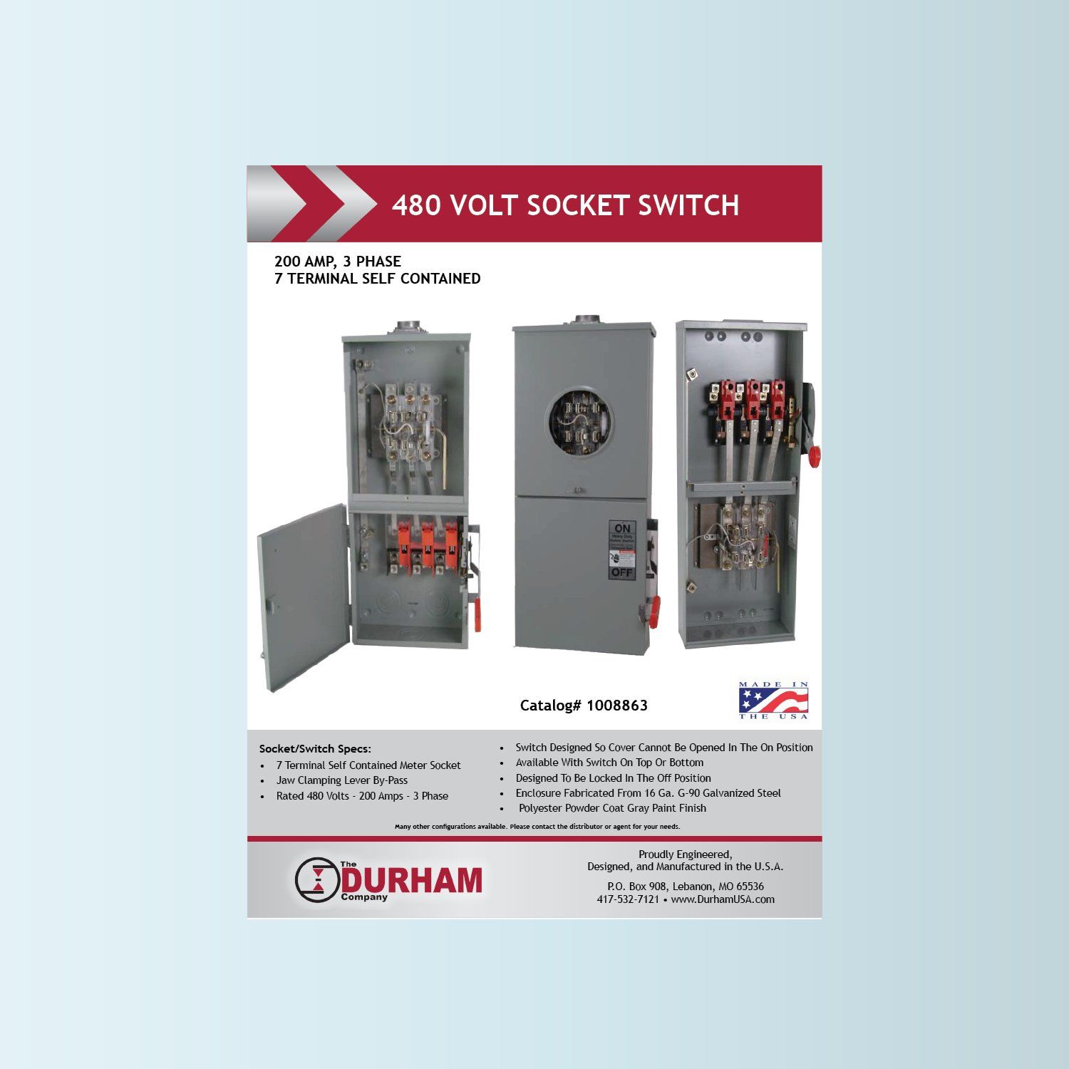 The Durham Company meter sockets, include twoposition 200 Amp meter