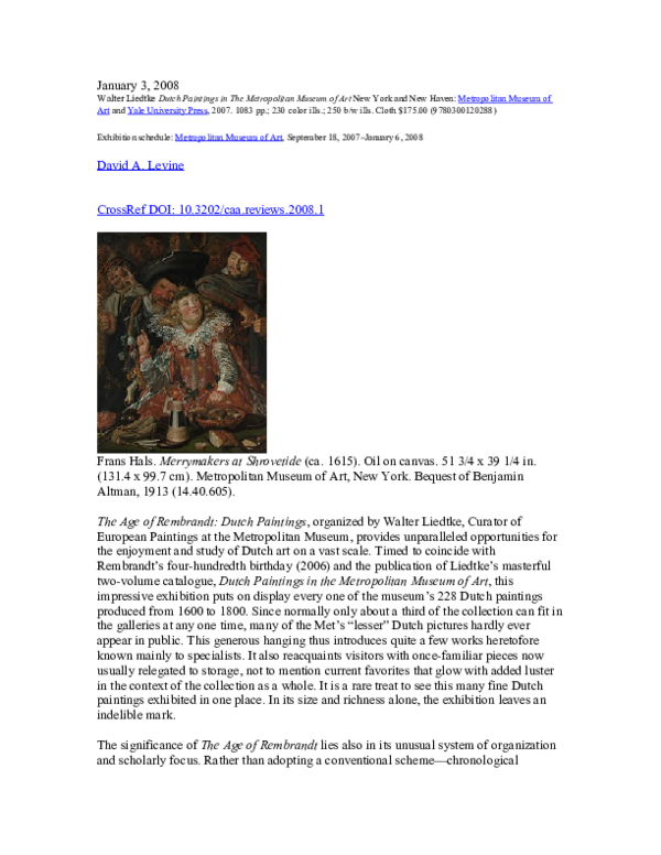 (PDF) Dutch Paintings in the Metropolitan Museum of Art by Walter Leidtke