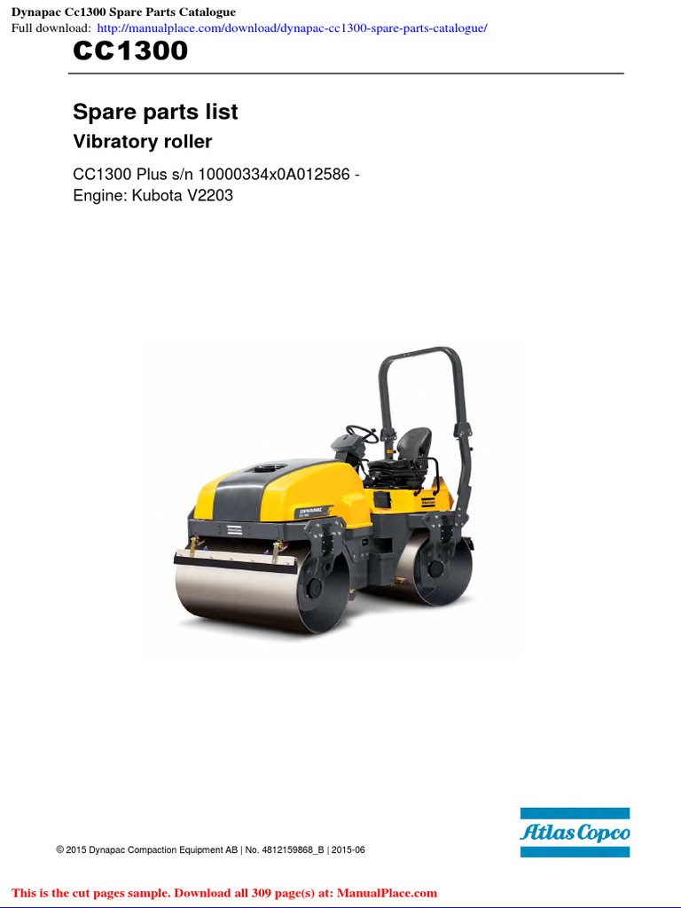 Dynapac CC1300 Spare Parts Catalogue manual PDF Download Service