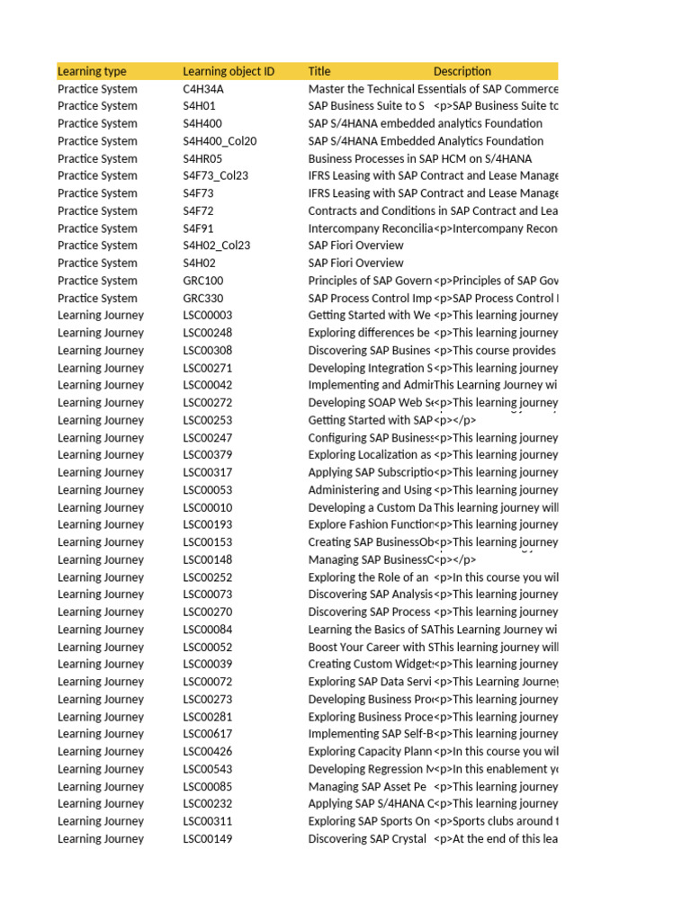 SAP Training Course Catalog Financials, NetWeaver, CRM