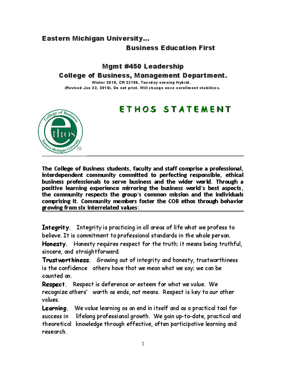 Syllabus mgmt 450 Eastern Michigan University... Business Education