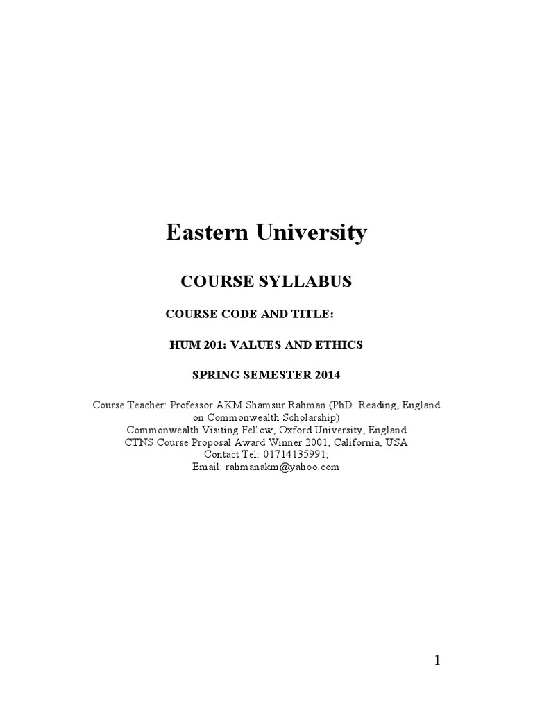 Eastern University Course Syllabus PDF Value (Ethics) Morality
