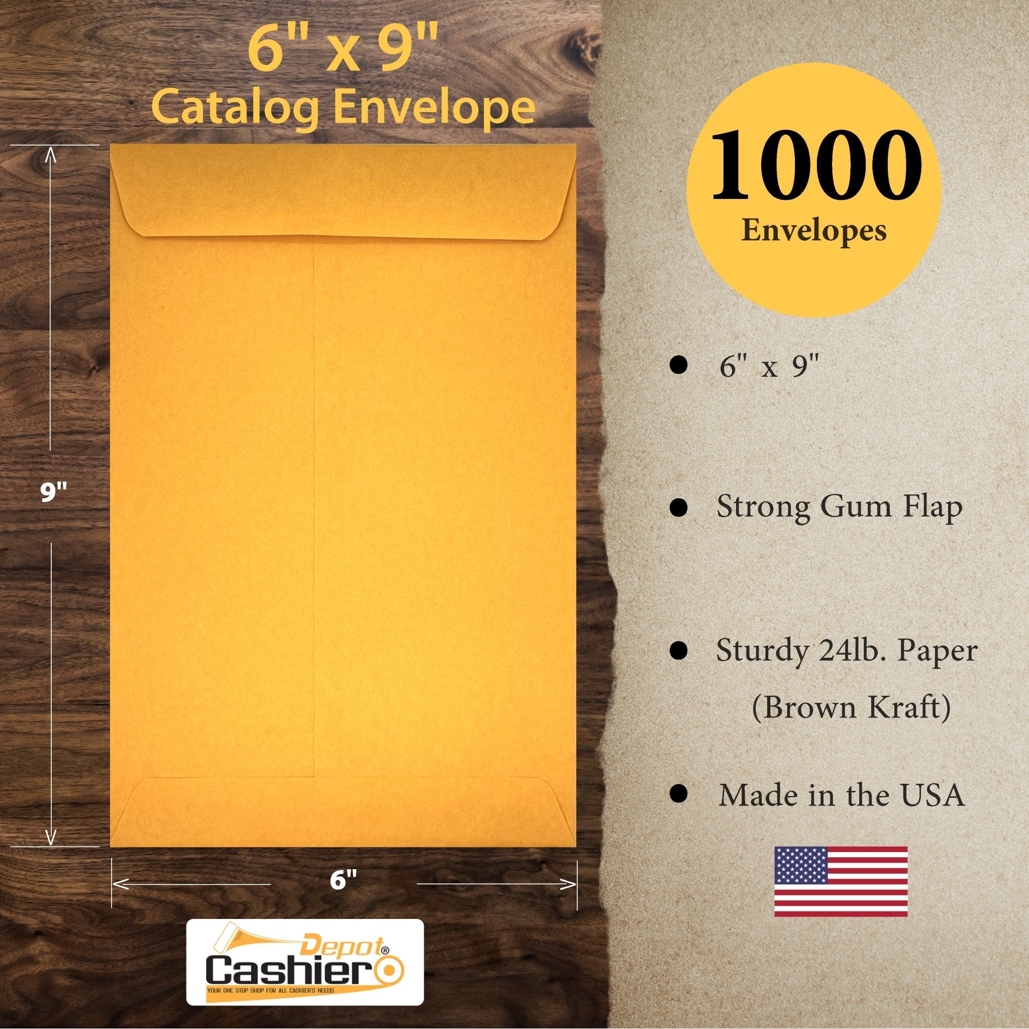 Cashier Depot 6" x 9" Catalog Envelope (Open End), Premium 24lb Kraft