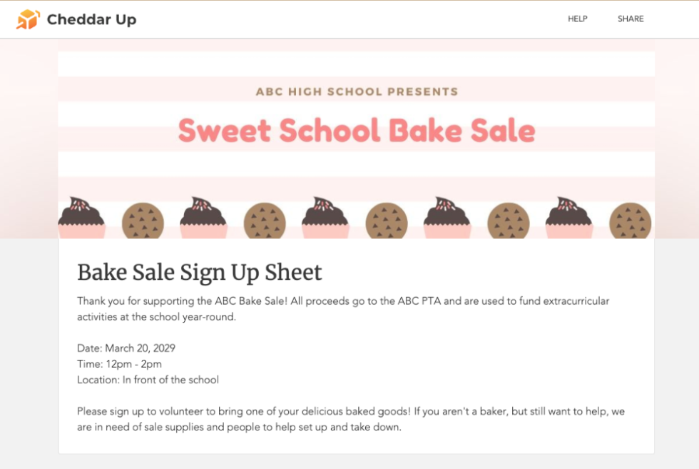 ![Easy SignUp Sheet for Bake Sale [+ Example]](https://www.cheddarup.com/wp-content/uploads/2023/05/Sign-Up-Sheet-for-Bake-Sale-Example-980x657.png)