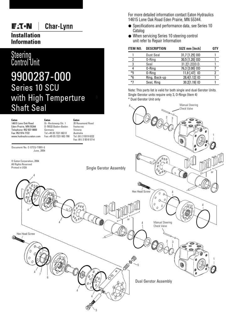 Eaton Steering Control Unit 20 Series Repair Instructions Manual