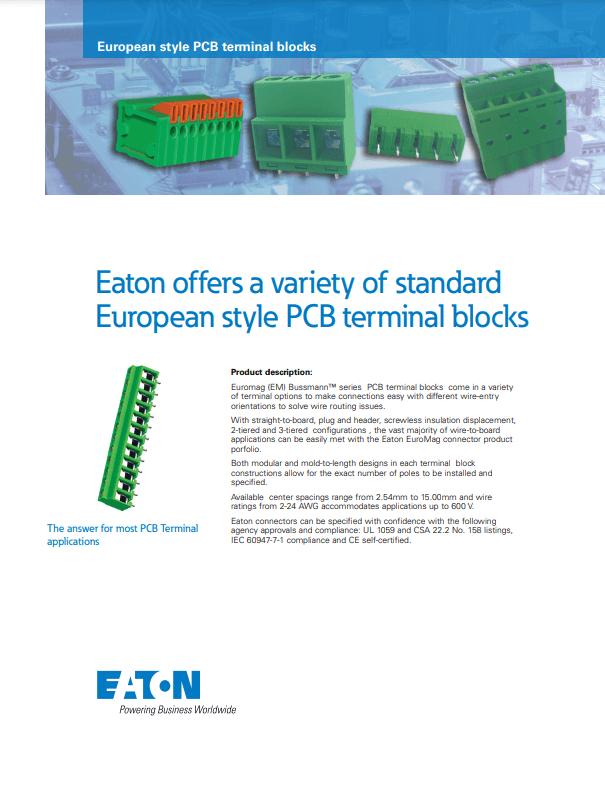 EATON European style PCB Terminal Blocks TTI, Inc.