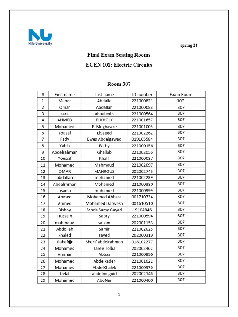 Final Exam Seating Rooms ECEN 101 PDF