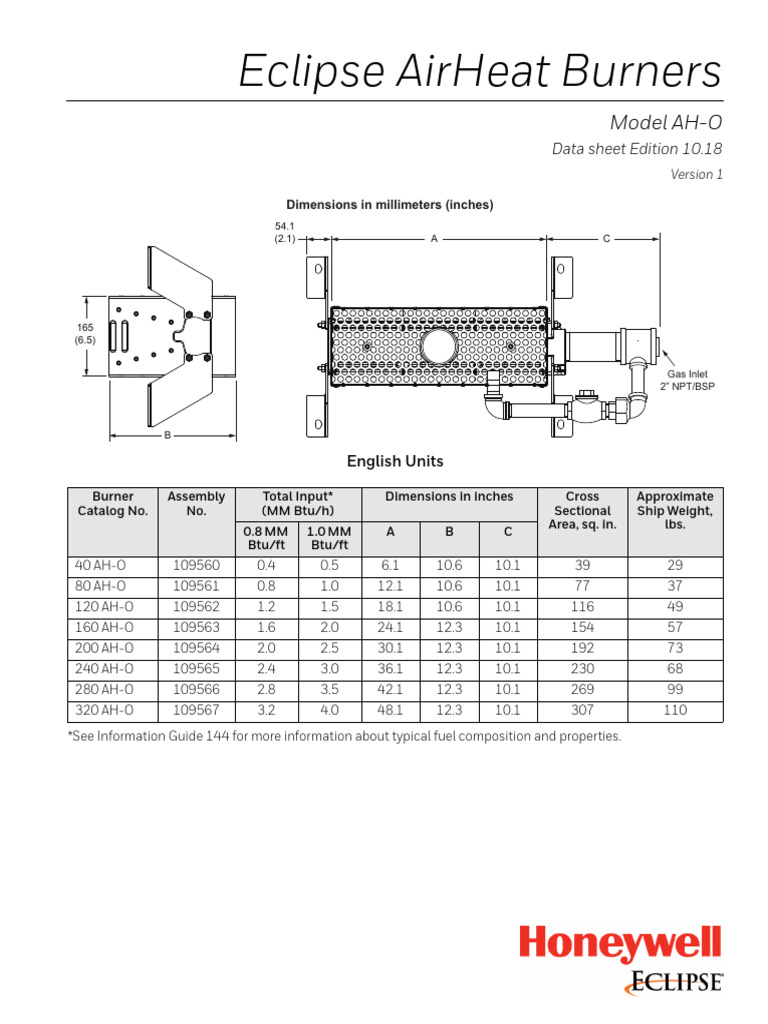 Eclipse Airheat Burners Model AhO PDF