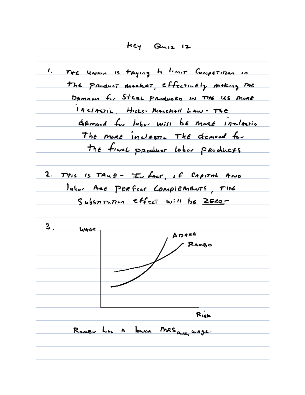 Econ 412 Key Quiz 12 Quiz KEY Quiz 12 1 THE Union is