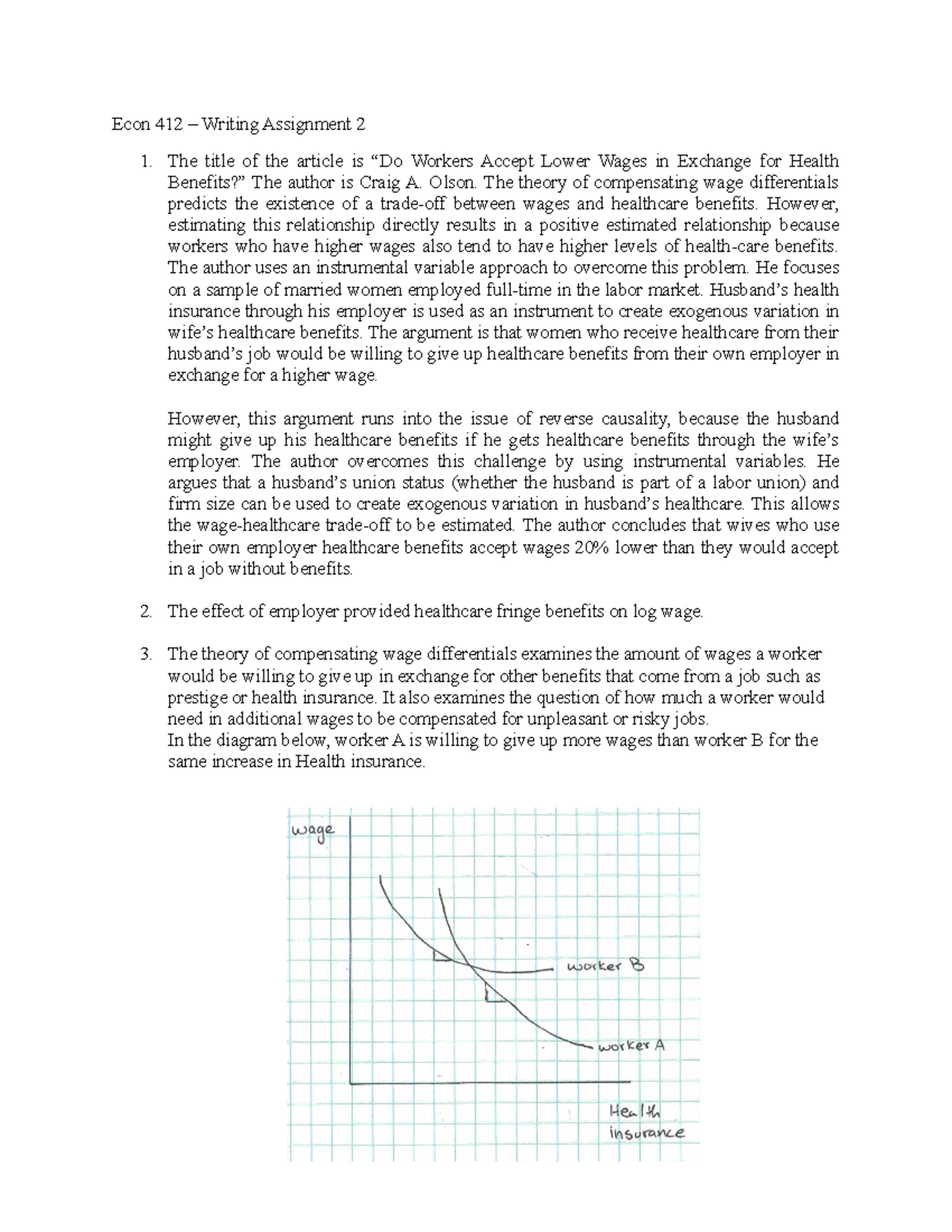 Labor Writing Assignment 2 Econ 412 Writing Assignment 2 The title