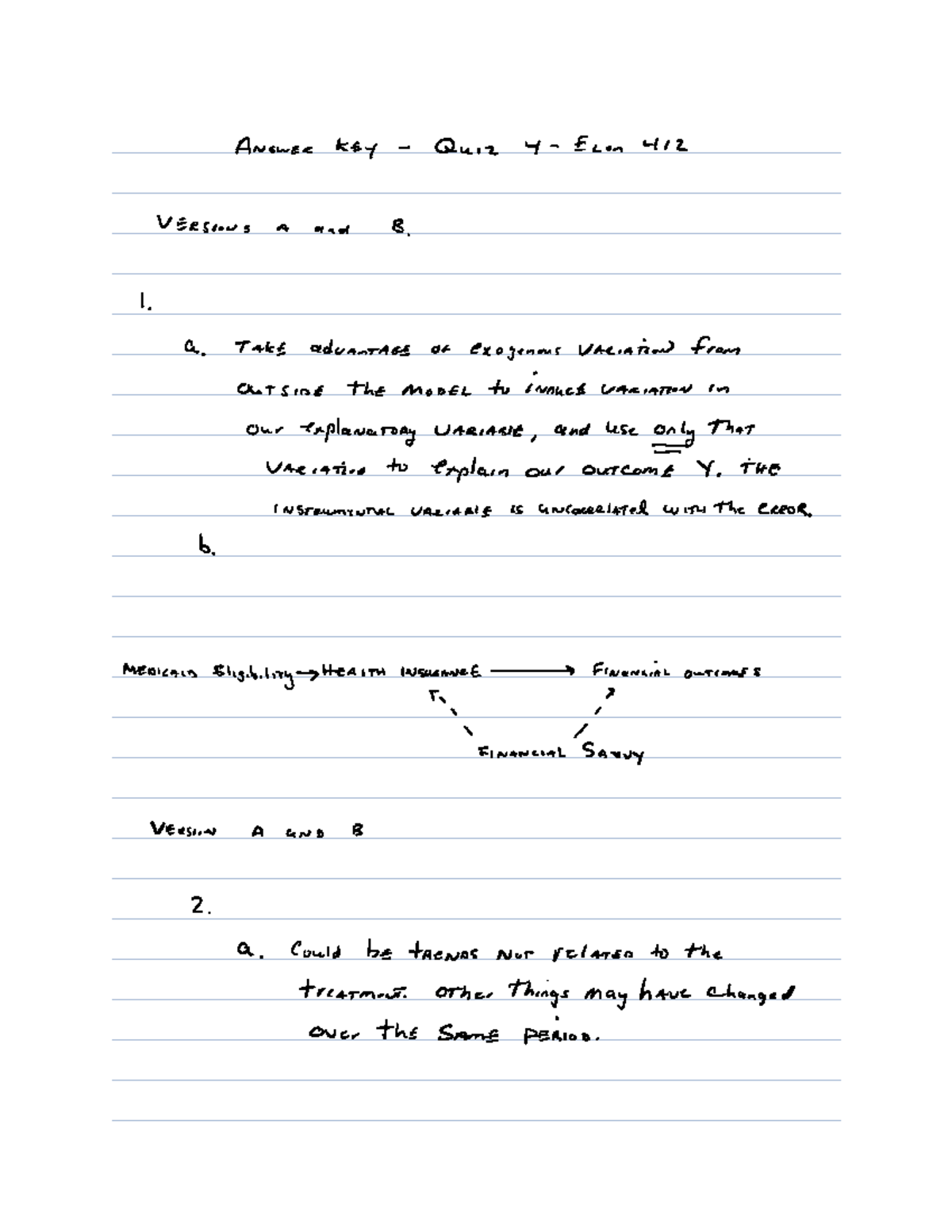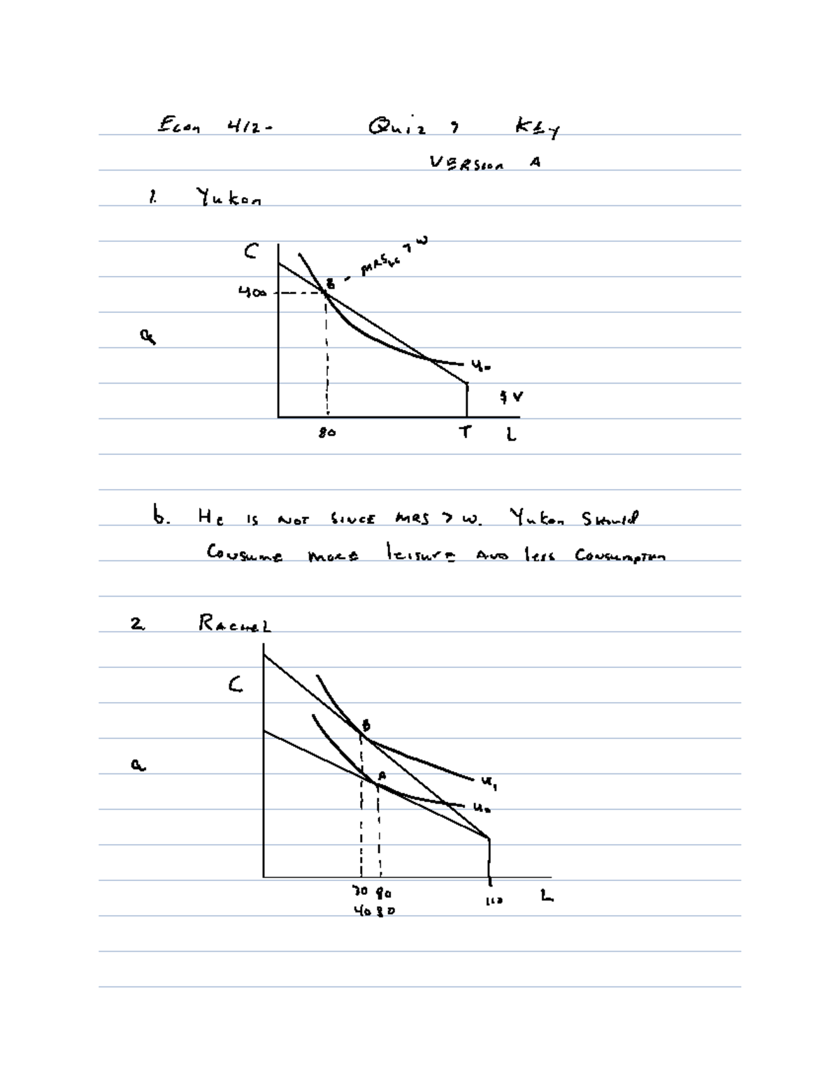Key Quiz 2 Econ 412 Quiz Answer KEY Quiz Z Econ 412 Version A
