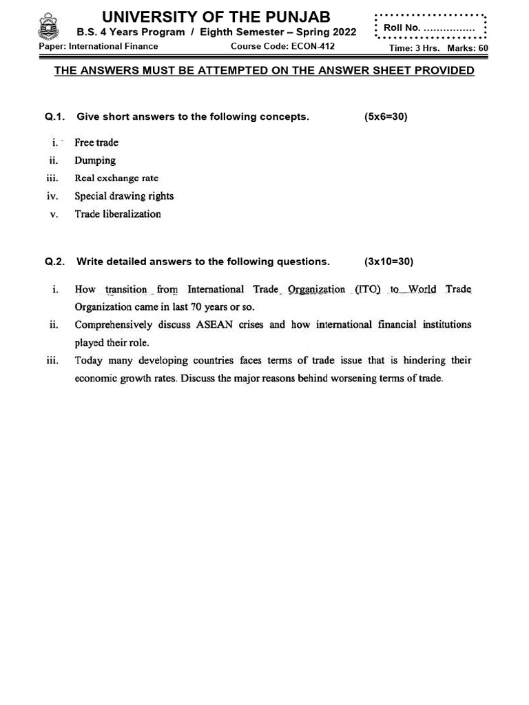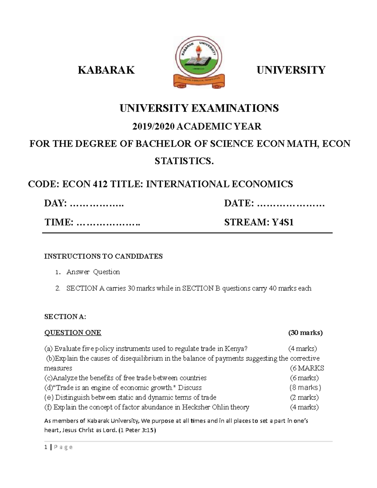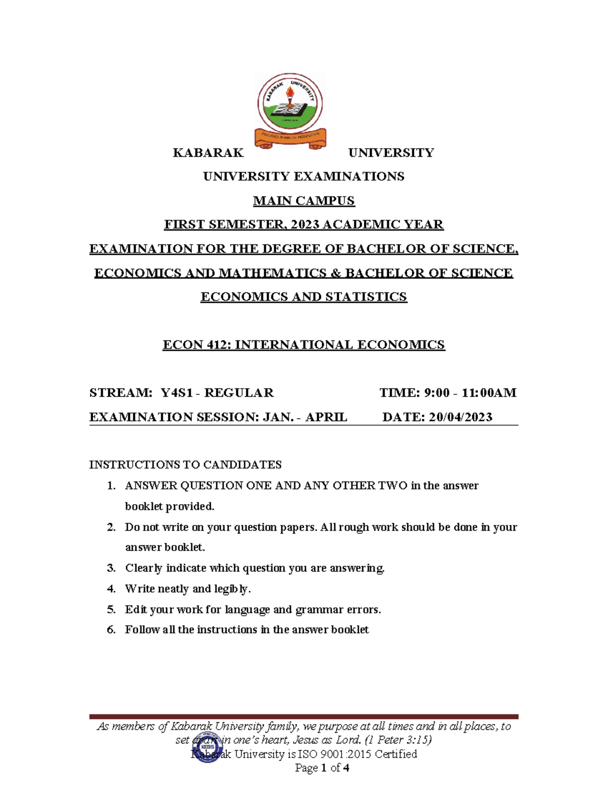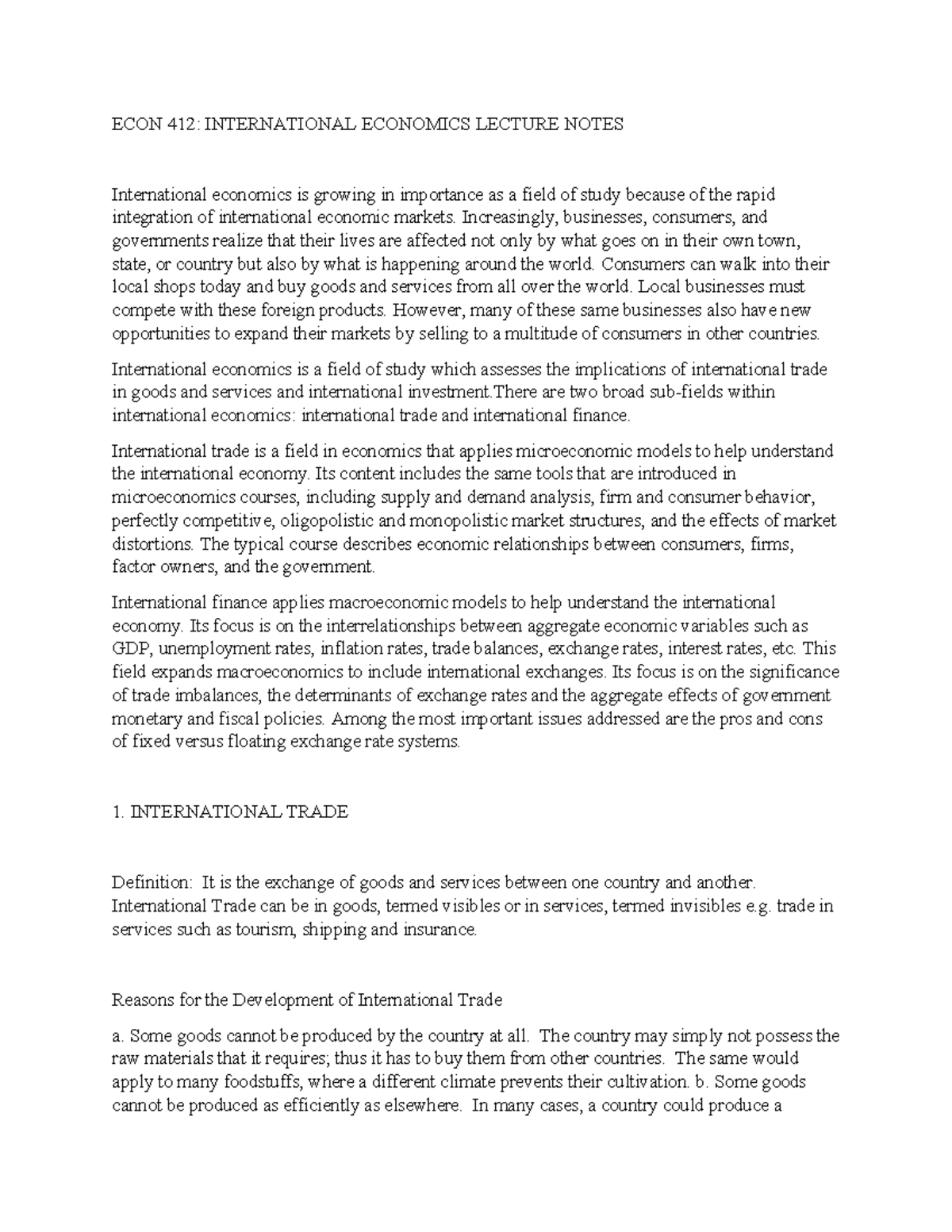 International economics ECON 412 notes ECON 412 INTERNATIONAL