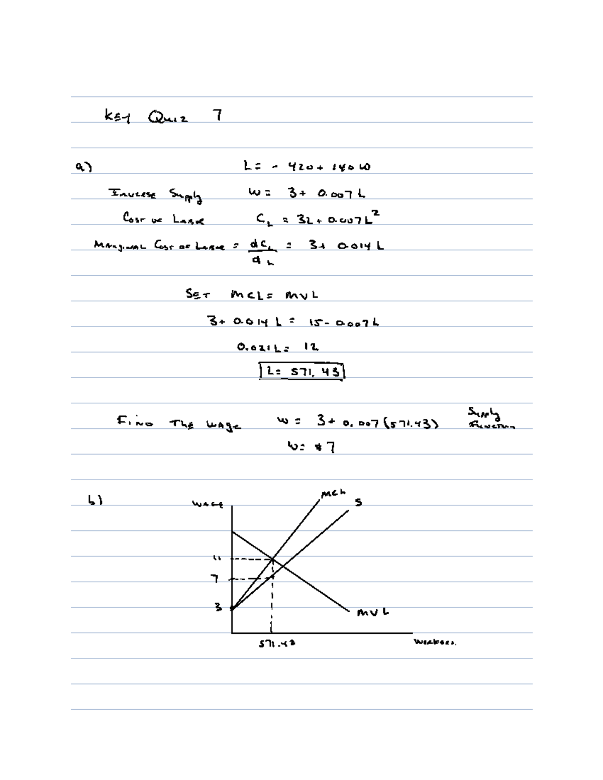 Econ 412 Key Quiz 7 Quiz KEY Quiz 7 a LI 420 t 140W Inverse Supply