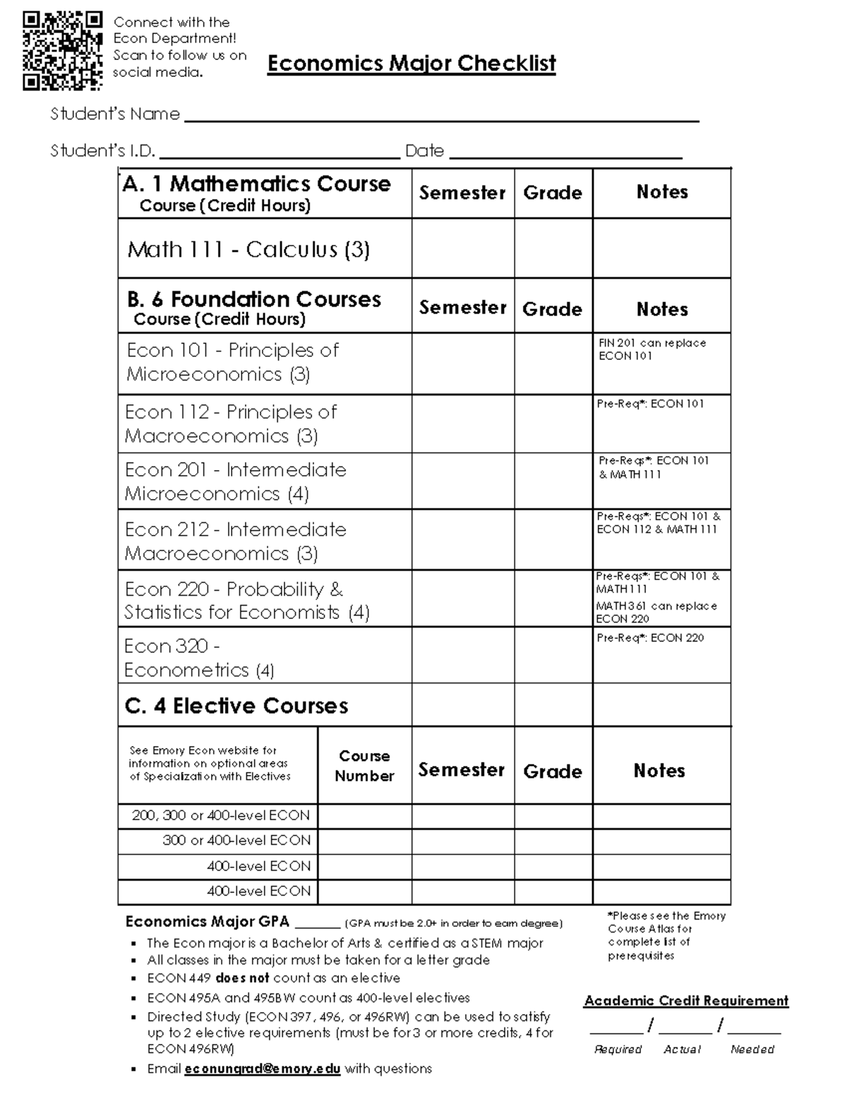 7 8 Econ Major Requirements 2020 2021 PreMajor Requirements