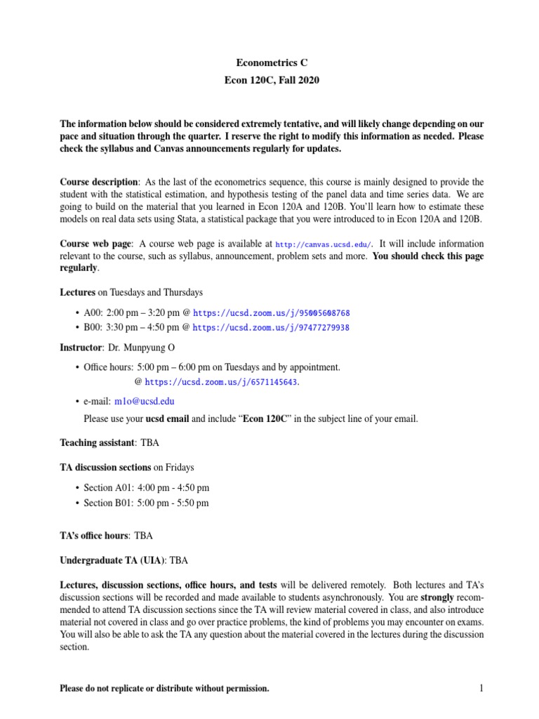 Econometrics C Econ 120C, Fall 2020 M1oucsd Edu PDF Textbook