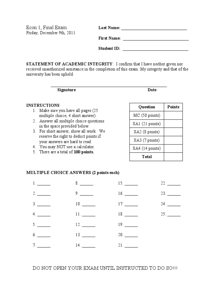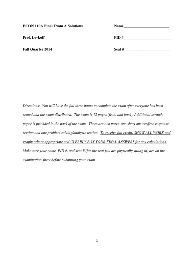 Econ 1 Final Fall 2011 UCSD PDF Perfect Competition Supply