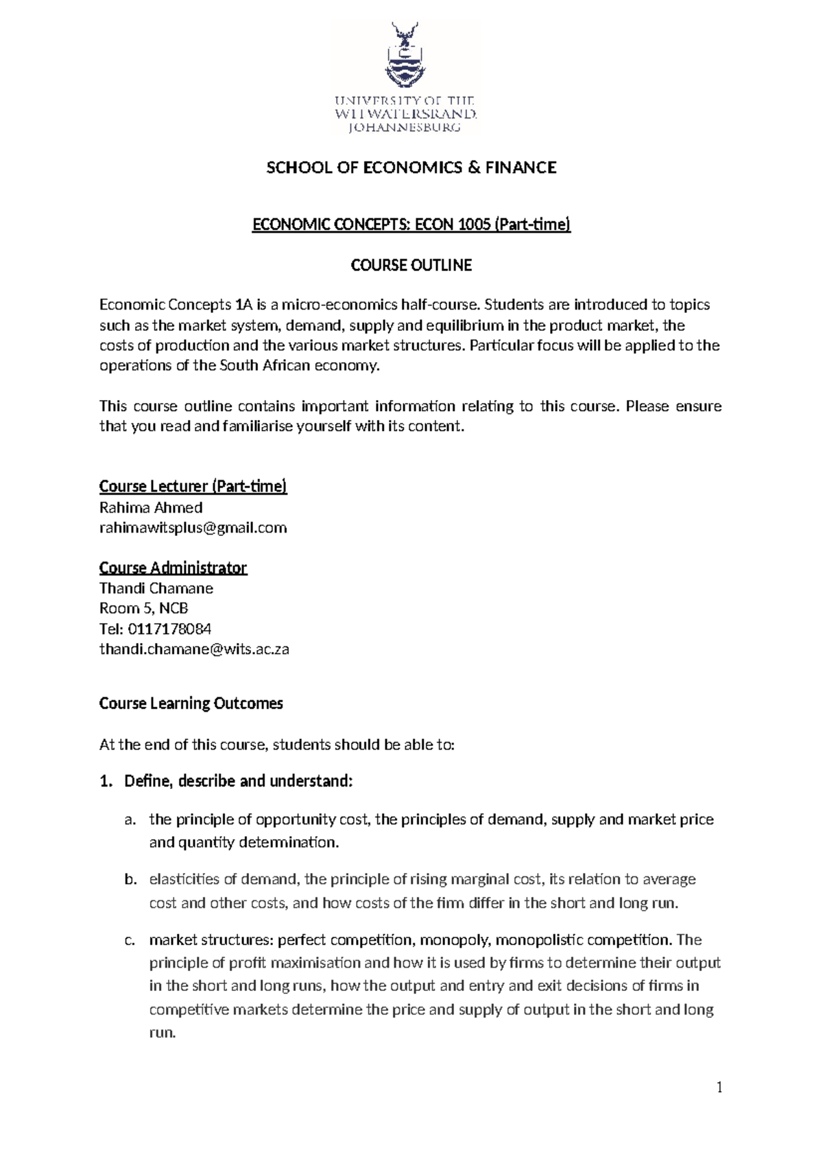 Course Outline ECON 1005 2025 Rahima1 SCHOOL OF ECONOMICS & FINANCE