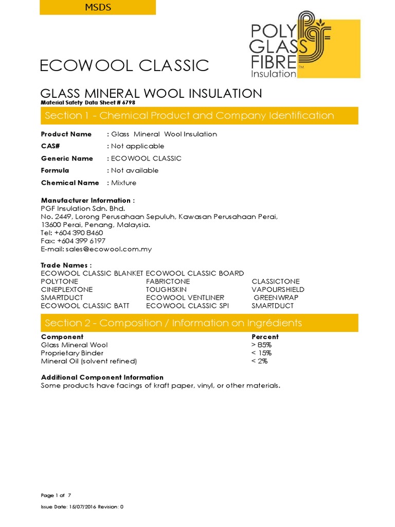 Msds 6798 Ecowool Classic PDF Personal Protective Equipment Waste