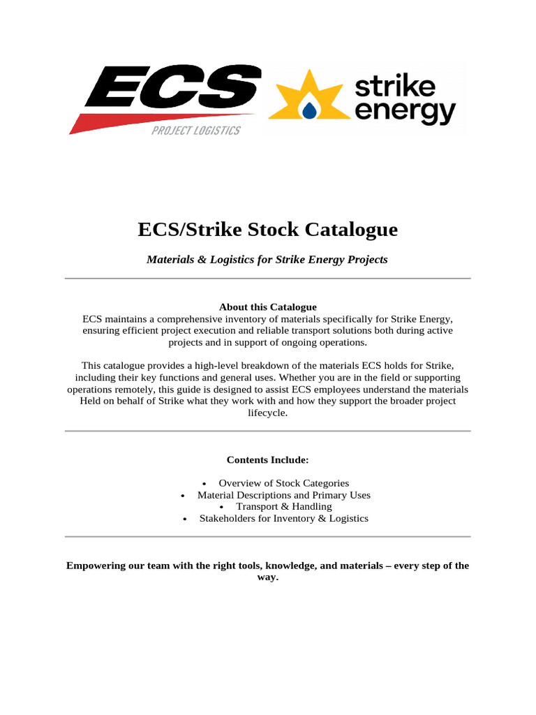 ECS Catalogue For Strike Energy Draft 2 PDF Casing (Borehole) Valve