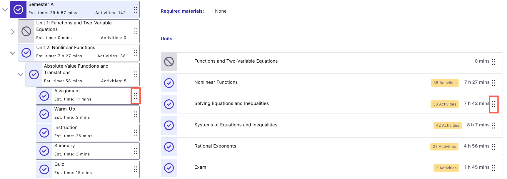 EdgeEX — Previewing a course in the Imagine Edgenuity, District, and