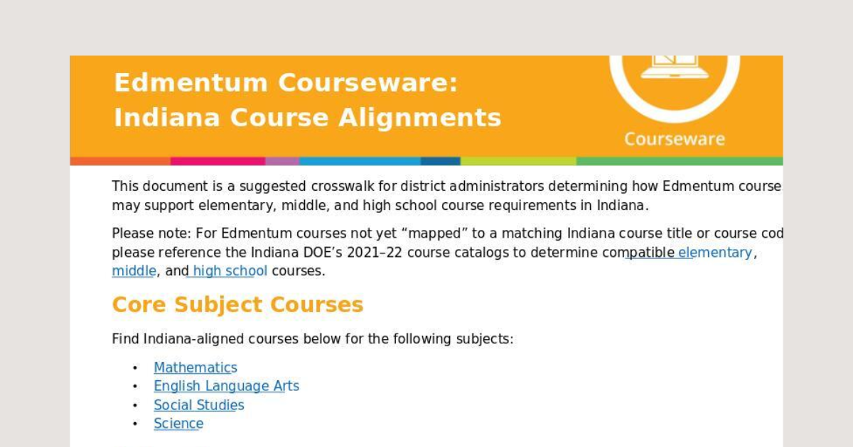 Edmentum Courseware Indiana Course Alignments Edmentum