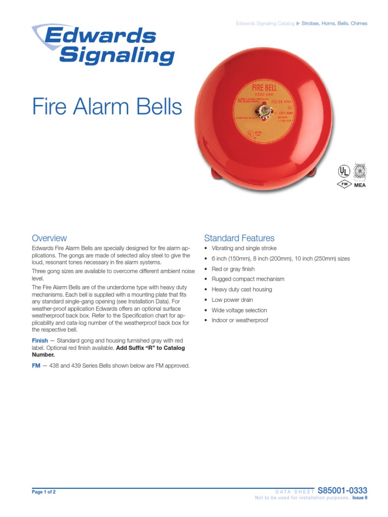 Edwards Signaling 439D10AW Data Sheet PDF Electrical Engineering