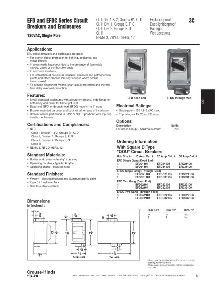 Crouse Hinds Efd Efdc Circuit Breakers Catalog Page PDF
