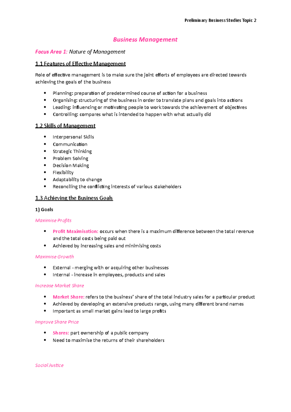 Topic 2 Business Management Notes Business Management Focus Area 1