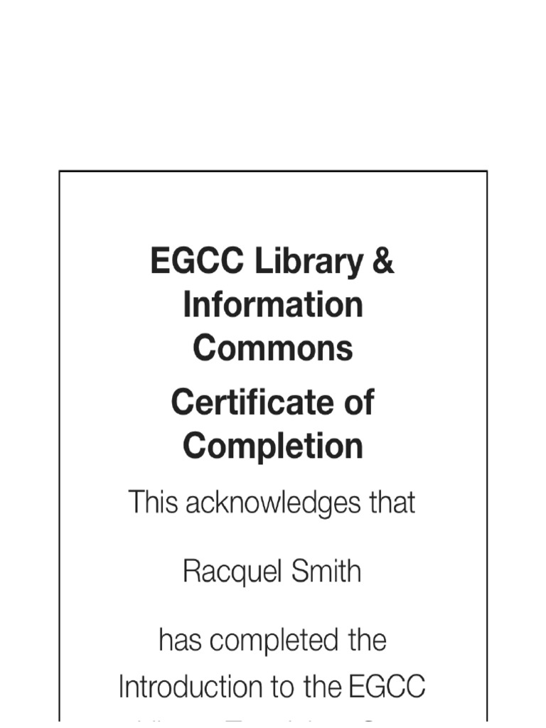 Certificate of Completion Introduction To The EGCC Library PDF