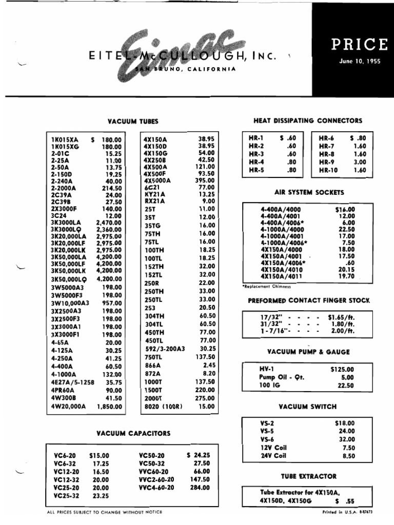 Eimac Power Grid Tubes Quick Reference Catalog 175. Amazon.co.uk