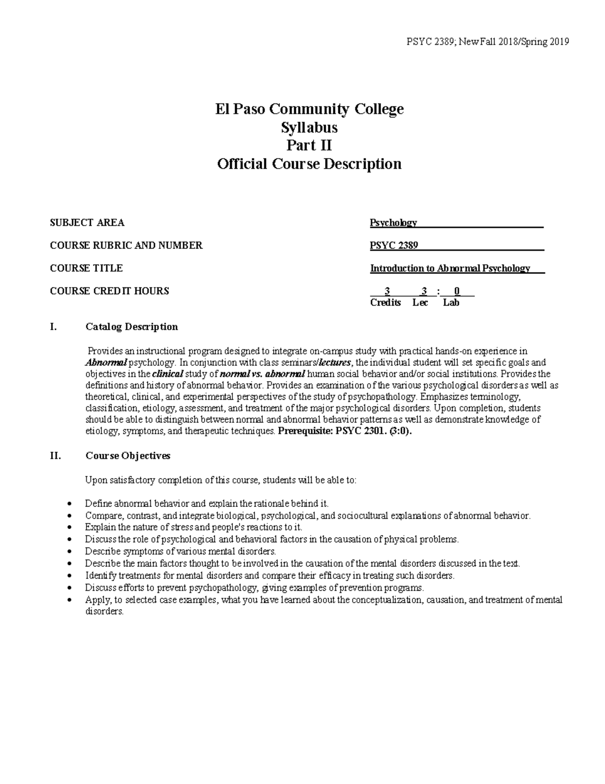 Psyc2389 PSYC 2389; New Fall 2018/Spring 2019 El Paso Community
