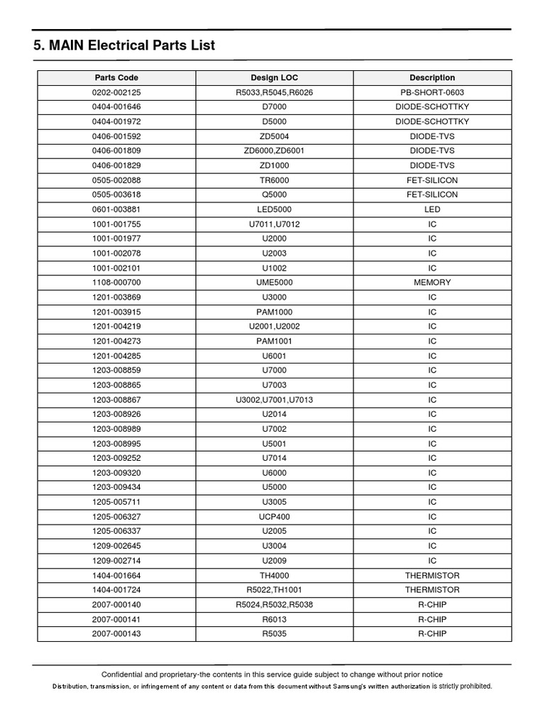 MAIN Electrical Parts List Sec Code Design LOC Description PDF