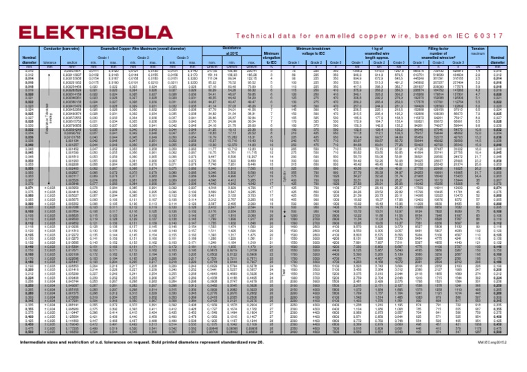 ELEKTRISOLA EnCuWire IEC Datasheet Eng PDF Electrical Resistance