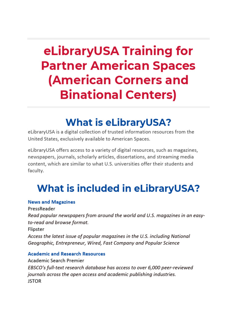ELibraryUSA Training For Partner American Spaces Package PDF