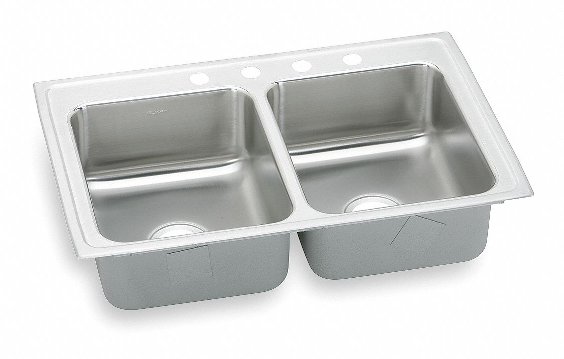 Elkay Lustertone Stainless Steel Equal Double Bowl Sink Top Sink