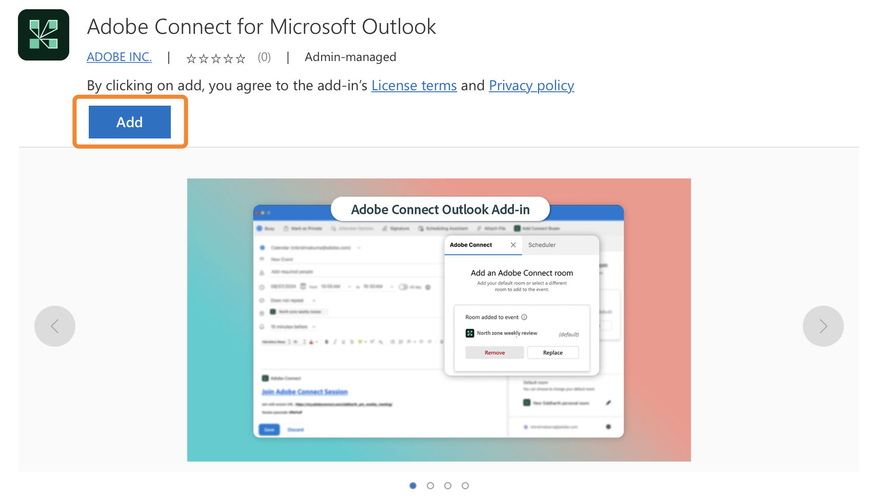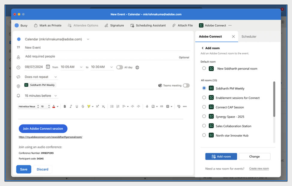 Create Adobe Connect meetings using the Microsoft Outlook addin