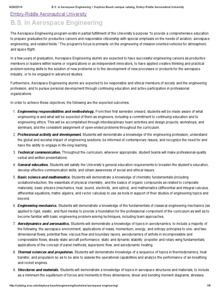 Bachelor of Science in Aerospace Engineering EmbryRiddle