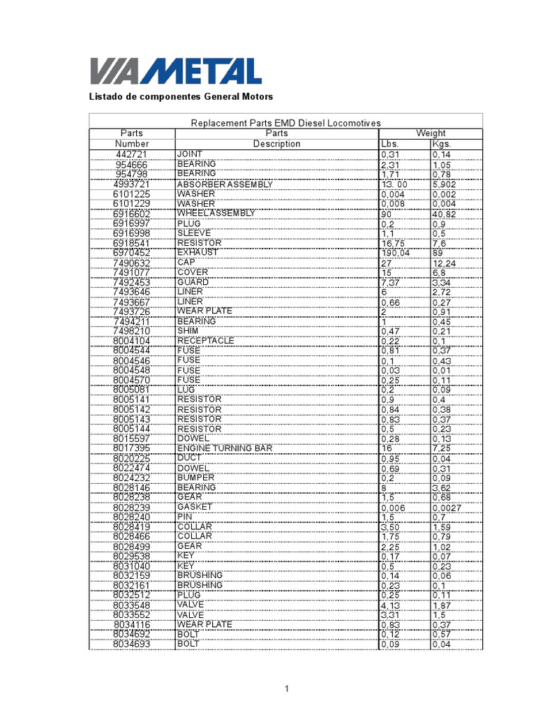 Emd Locomotive Parts Catalog