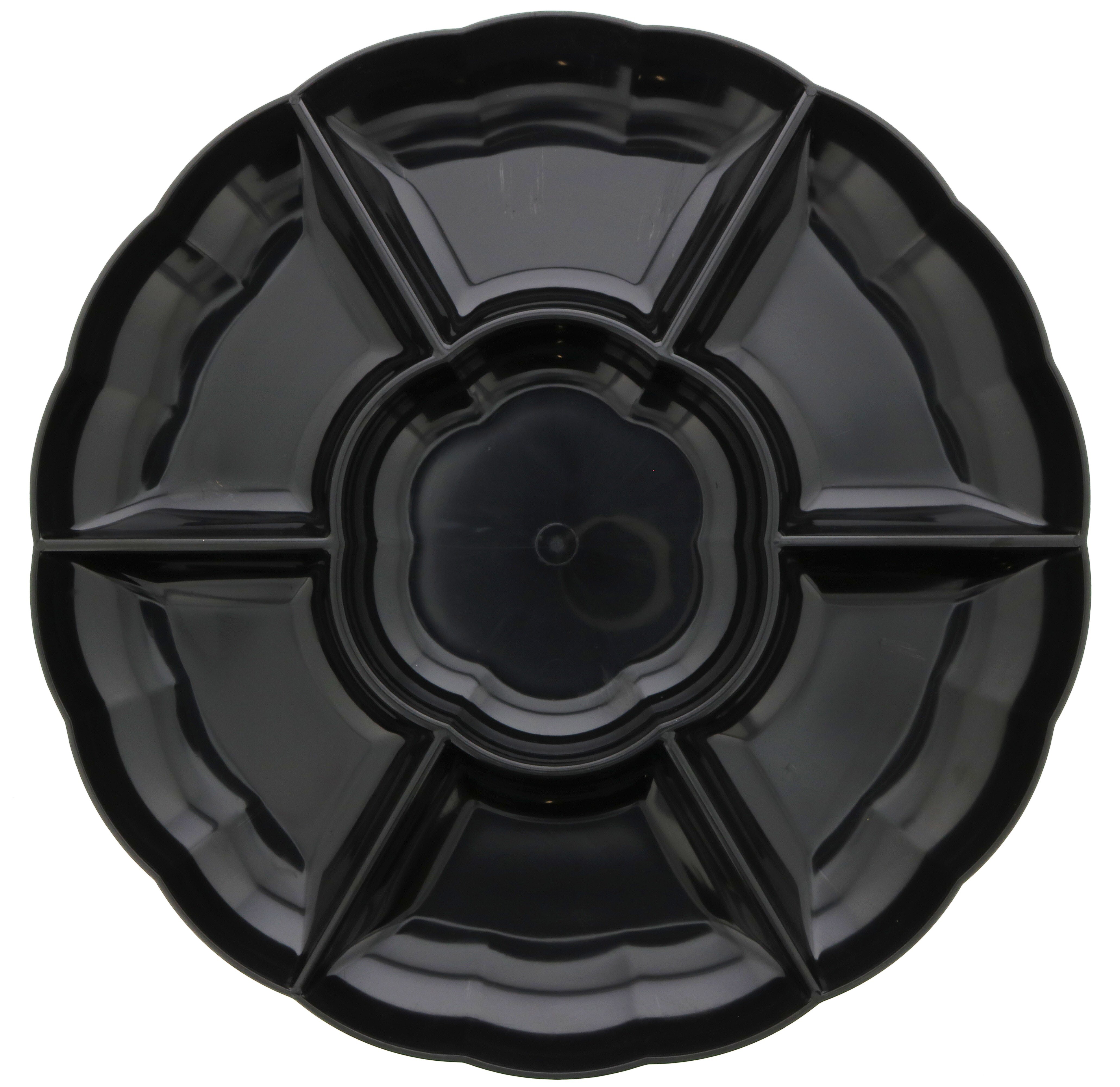 EmiYoshi Black Polystyrene 18 inch Round 7 Compartment Deli Mate Tray