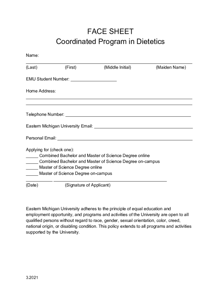 Fillable Online catalog emich FACE SHEET updated 3.2021 Fax Email Print