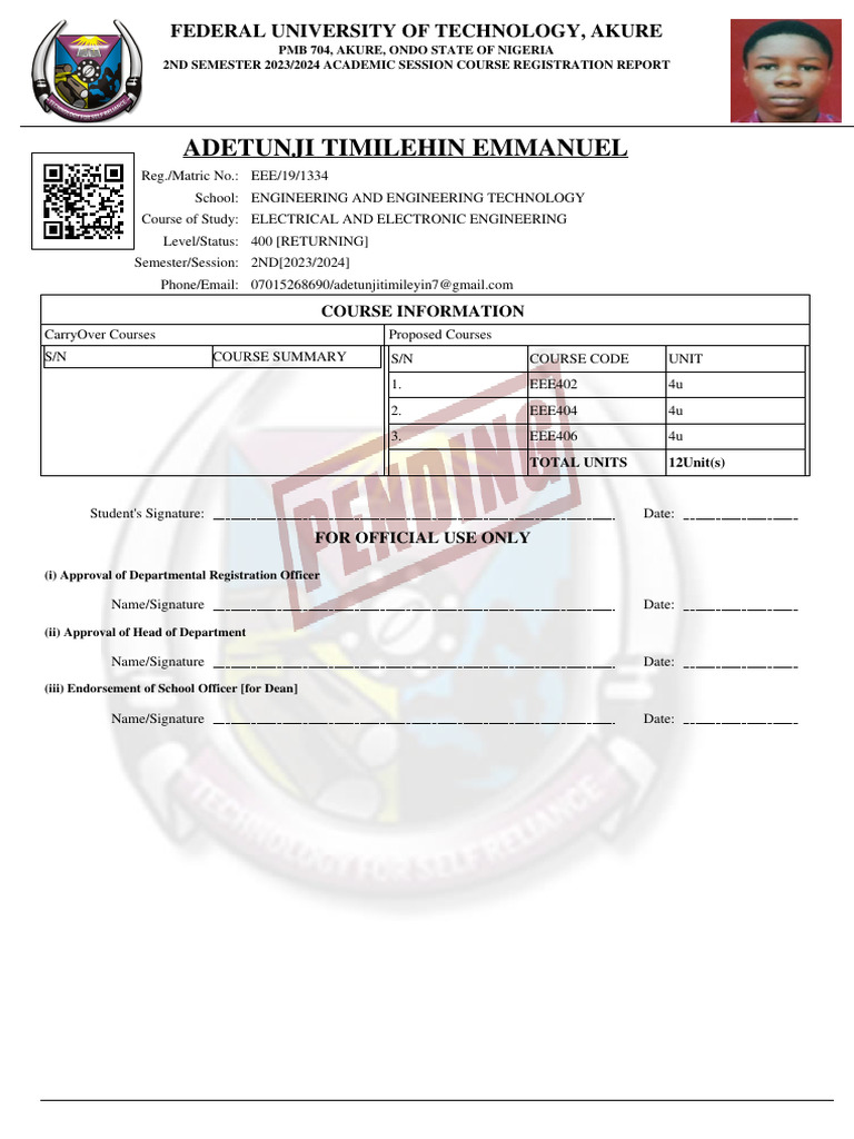 Adetunji Timilehin Emmanuel Course Registration PDF