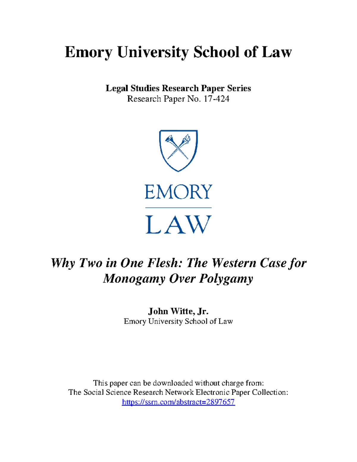 Emory Law Research Paper The Case for Monogamy Over Polygamy Studocu