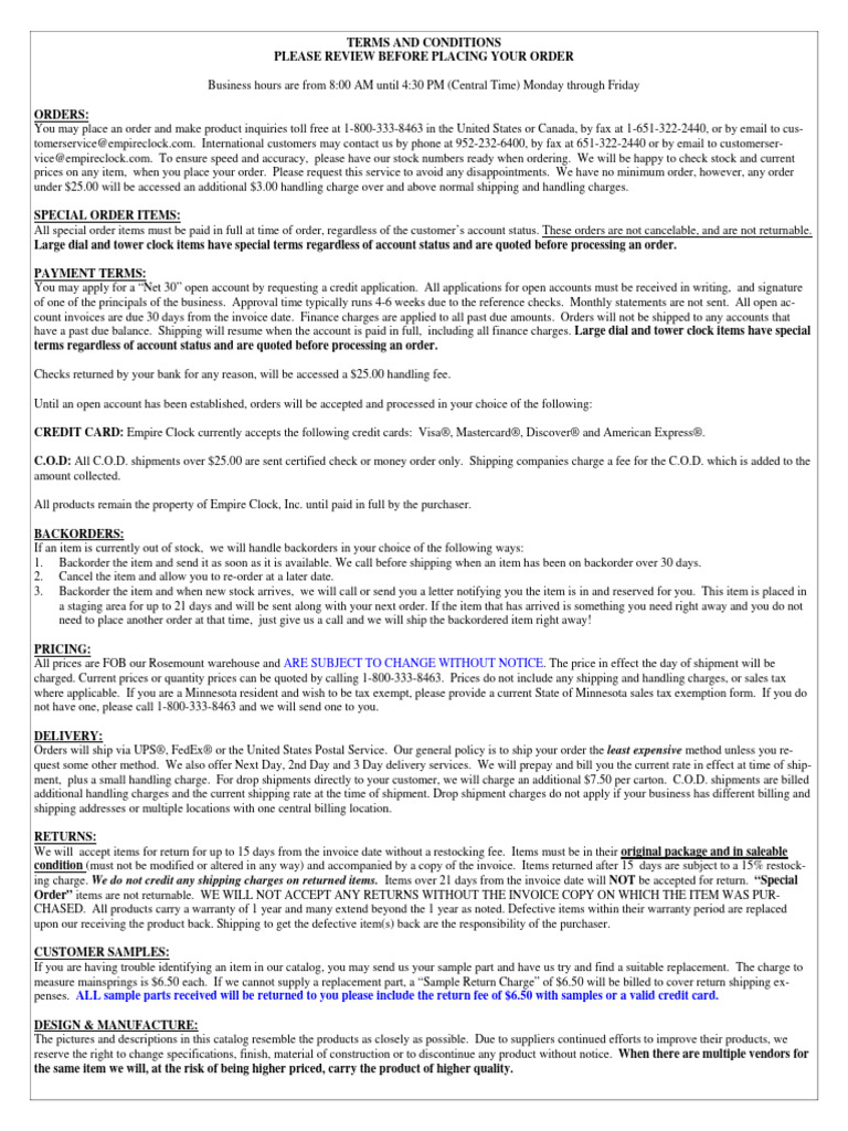 Empire Catalog 2009 PDF Clock Pendulum