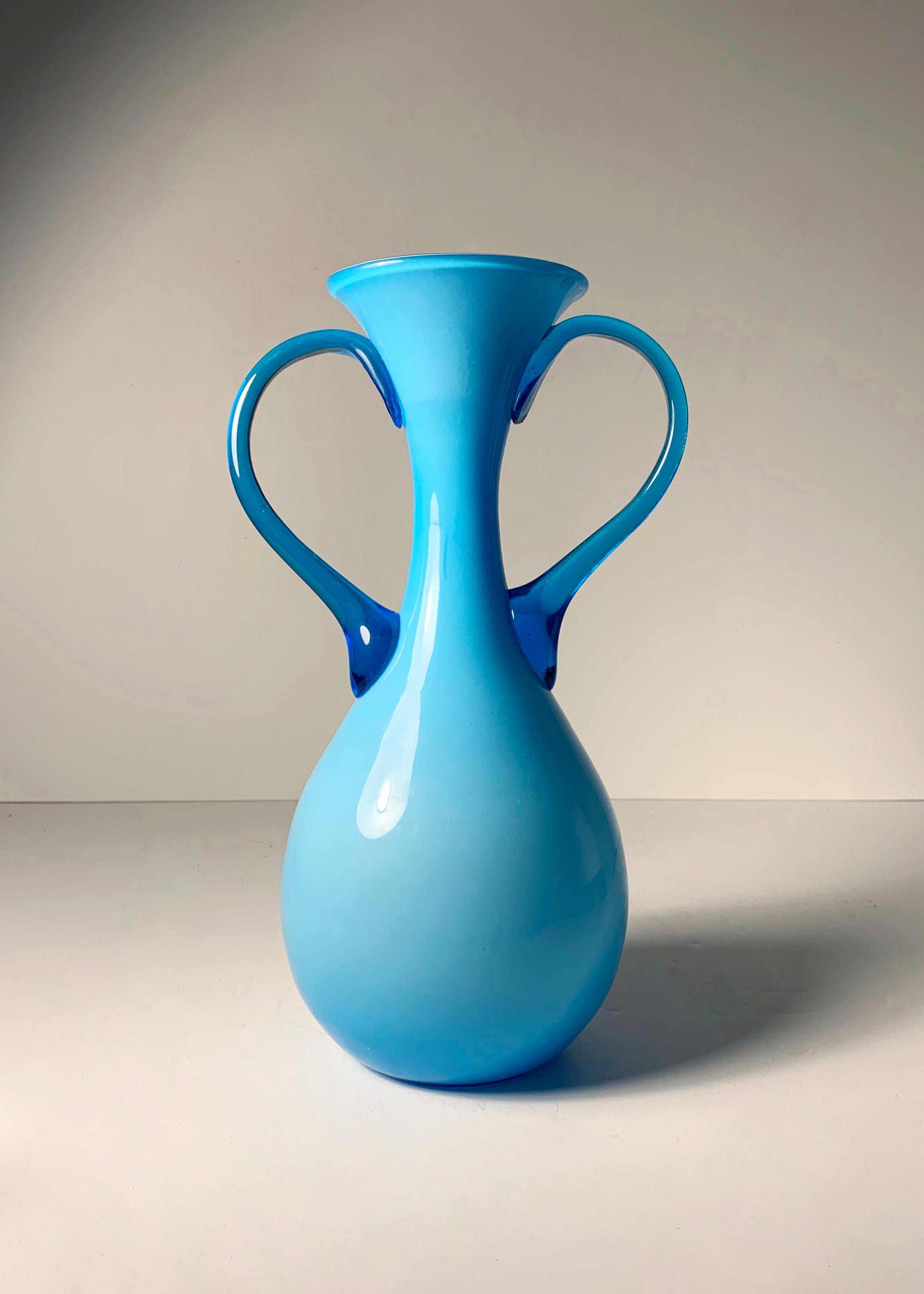 1960s MidCentury Italian Sky Blue Cased Empoli Glass Pitchers Vases